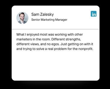 Be part of a fast-paced, collaborative hackathon where teams of B2B marketers build strategies, campaigns, and solutions for a nonprofit’s marketing challenge—while your brand sits at the center of the action